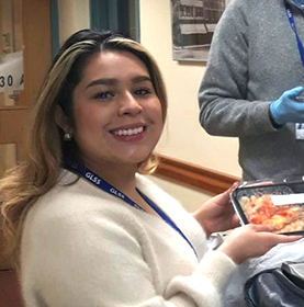 Eunice Lopez, a Phoenix Navigator, helping prepare meals for delivery to Meals on Wheels consumers.
